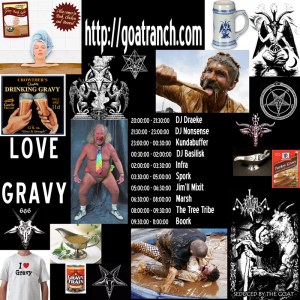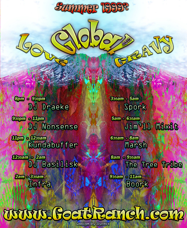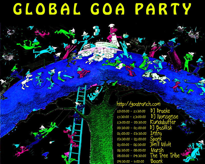 I am happy to announce that Global Goa Party: Love Gravy is officially on! In just under a week, I’ve received enough sign-ups for a full line-up, and even the first flyer art submittal (thanks Draeke!).